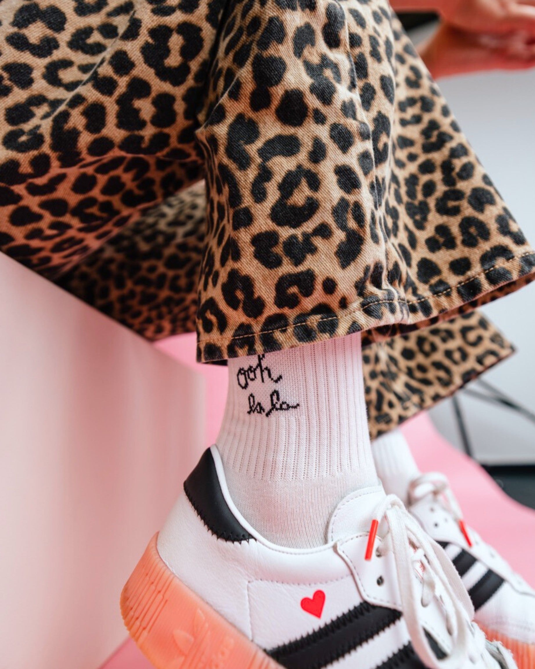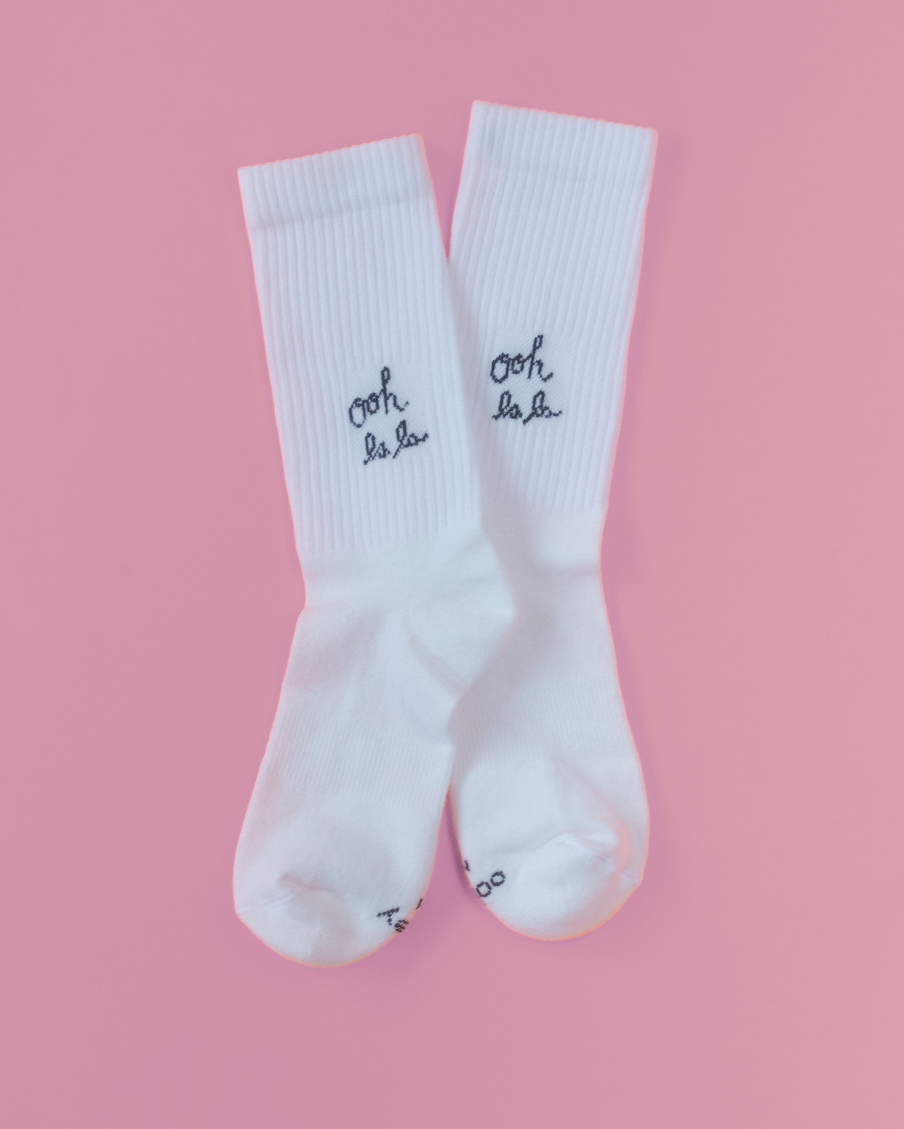 Our OH LA LA motif socks bring French flair and clear typography to your feet. The elegant “Oh la la” lettering is a quiet but confident design statement – minimalist, modern, and stylish.