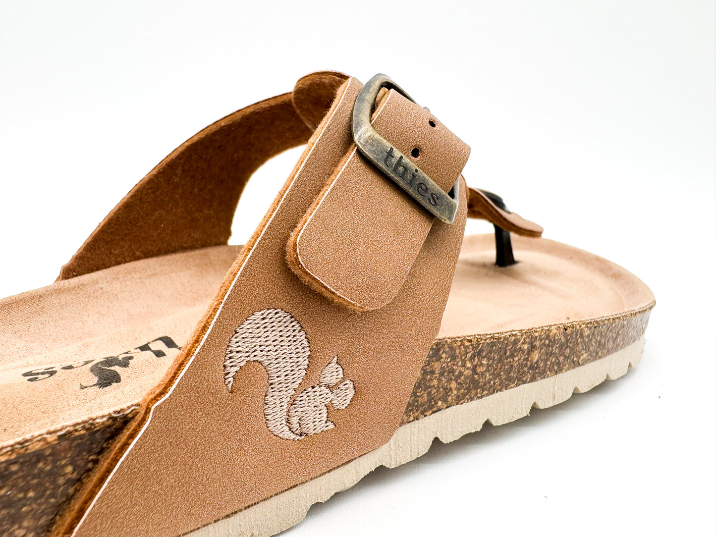 Die veganen Eco Thong Braid Sandalen von thies ® sind aus der Supersuede Lederalternative gefertigt. Das Futter besteht aus weichem PET, also aus recycelten post-consumer PET Flaschen und die gepolsterte Decksohle ist aus recyceltem PES hergestellt. Die Sandalen sind unisex, ultraleicht, die Laufsohle aus recycelbarem Kork und ohne störende Nähte hergestellt. Ergonomisch geformtes, weich gepolstertes Tieffussbett. Der Schuh eignet sich ideal zu allen Jahreszeiten und sogar barfuss! Das innovative Material ist von echtem Leder sowohl in Haptik, Optik und Performance kaum zu unterscheiden.