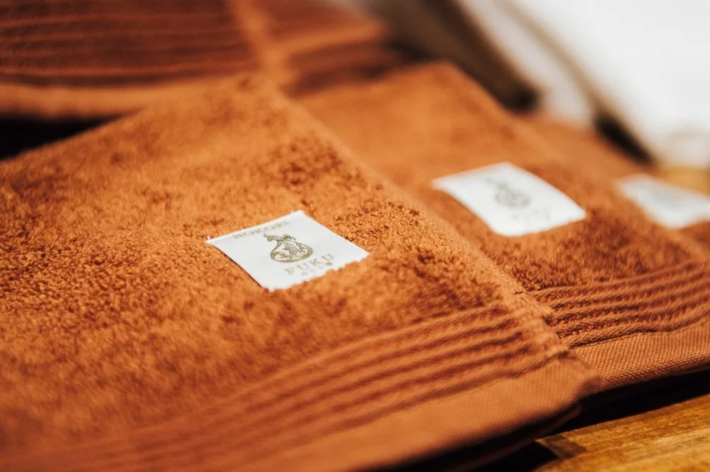 Established in 1926 in Osaka's largest towel production area, the Izumi region. Over the course of nearly a century, Fukuroya has continually adopted and improved its techniques and planning skills, using natural dyeing ingredients to create soft, highly absorbent towels.