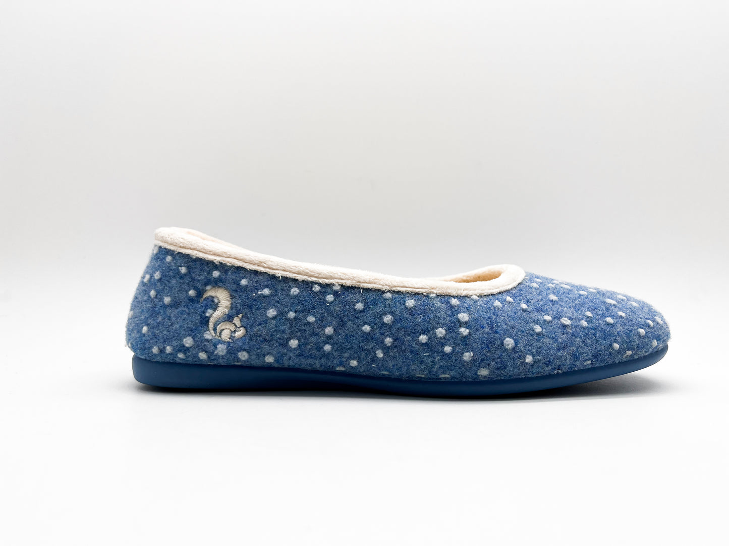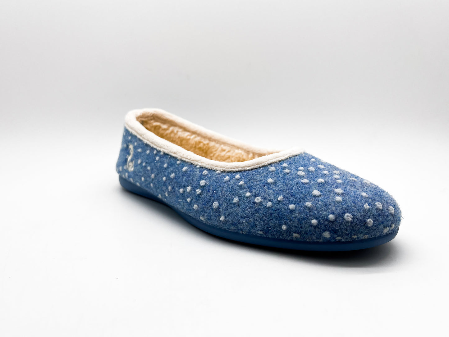 Die Eco Snow Ballerinen von thies® sind aus weichem, recyceltem GRS®-zertifiziertem Wollfilz und die Einlegesohlen sind aus zertifizierter Bio-Baumwolle. Die Hausschuhe sind leicht, die Laufsohle aus recyclebarem, echtem Gummi bequem & kuschelig.