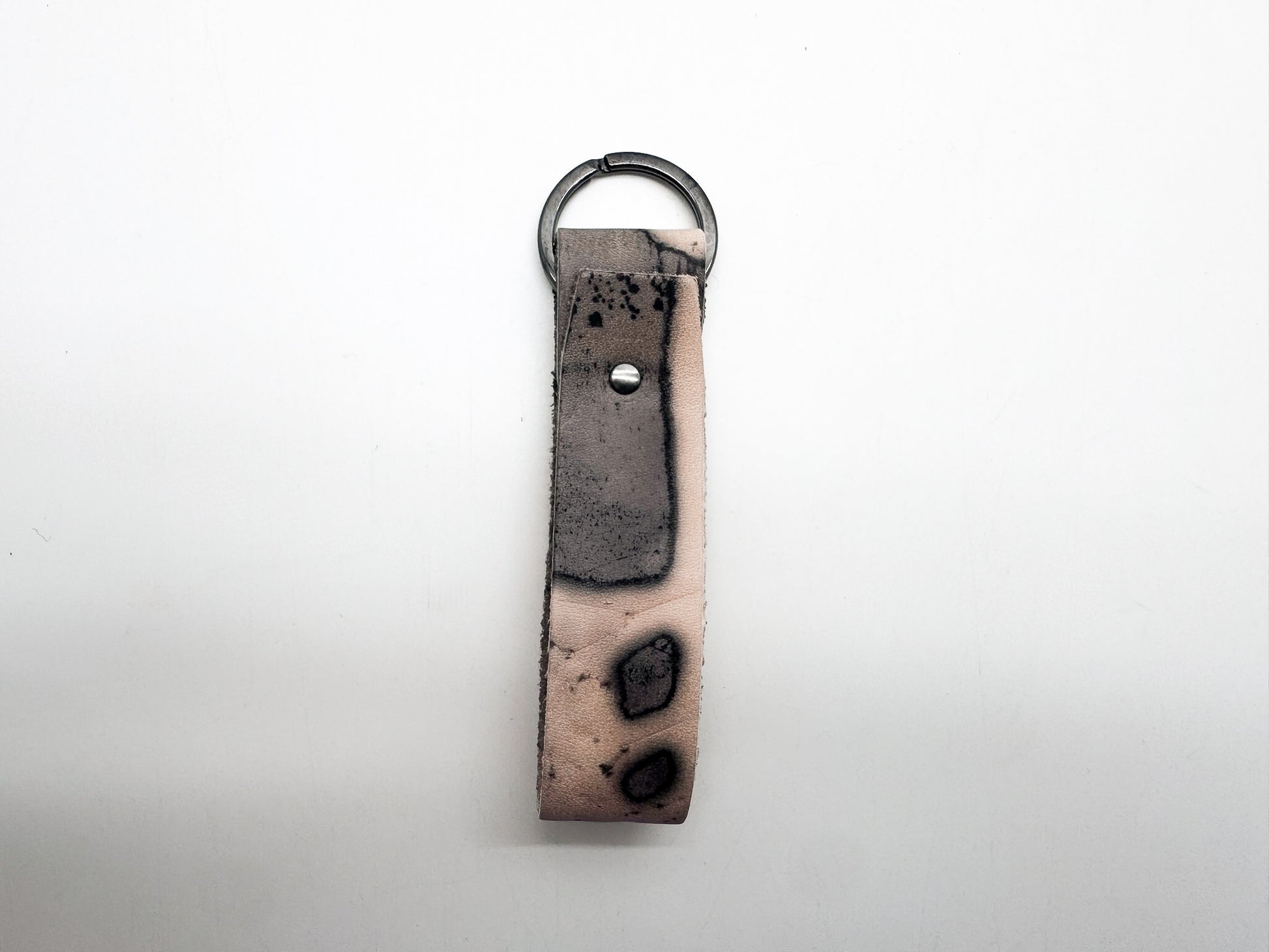 The nat-2™ Leather Keychain! Keychain in a rusted tan version in colab with Talia Luvaton! It was made luxury tan leather that has rusted and oxidated through a unique artistique technique using real flowers. The leather is used from sneaker and flower vase production leftovers of the same project.