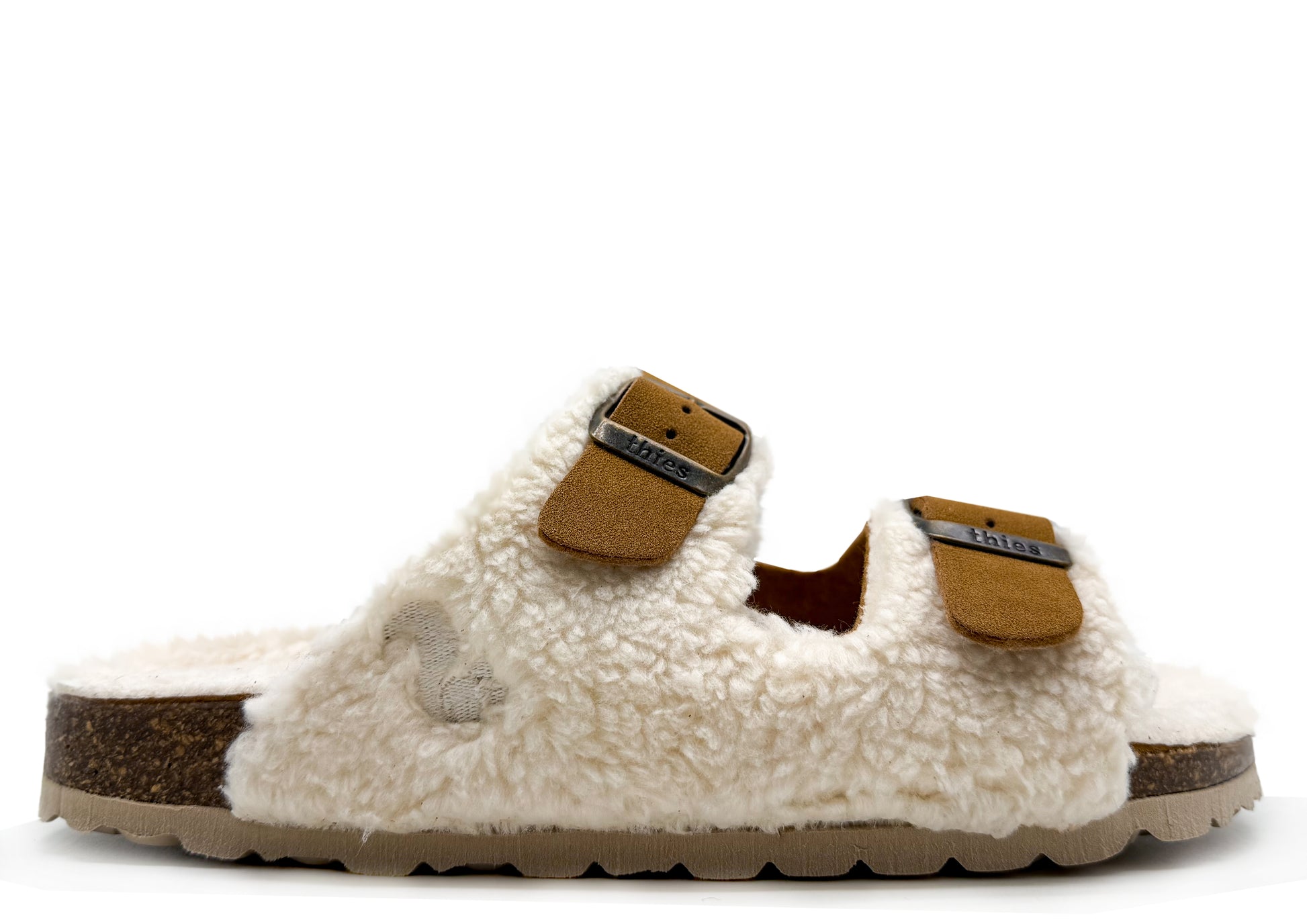 The Eco Teddy Mixed Sandals from thies ® are made from cuddly organic cotton teddy with a vegan leather strap detail. The insole is made from organic cotton, making the sandals soft and comfortable. Ergonomically shaped, soft thies ® deep footbed made from real cork. The shoe is great for wearing barefoot and with socks!