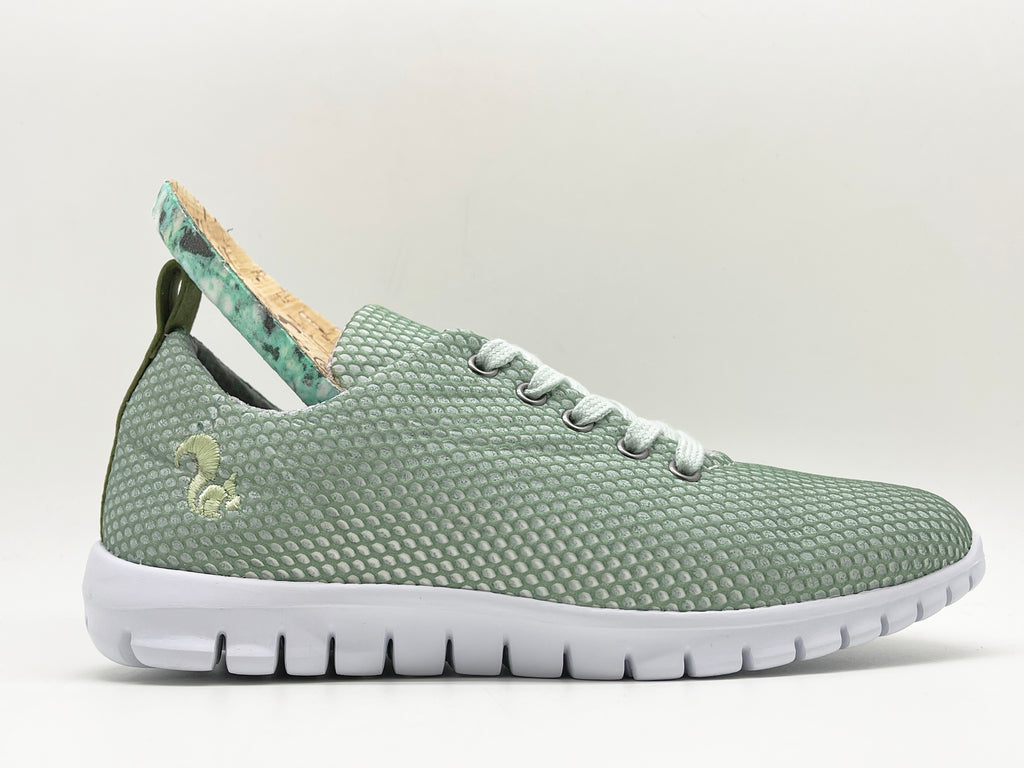 The lining and the removable insole are made of recycled PES mesh and recycled EVA.