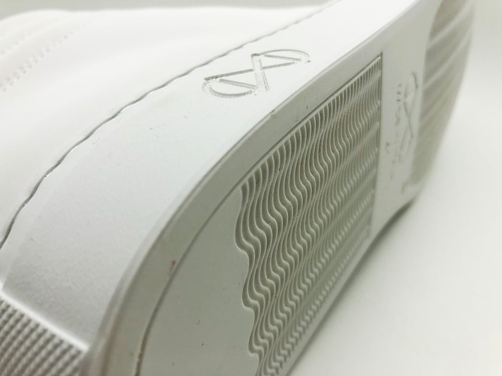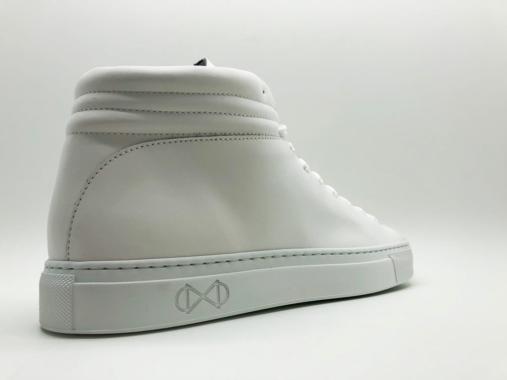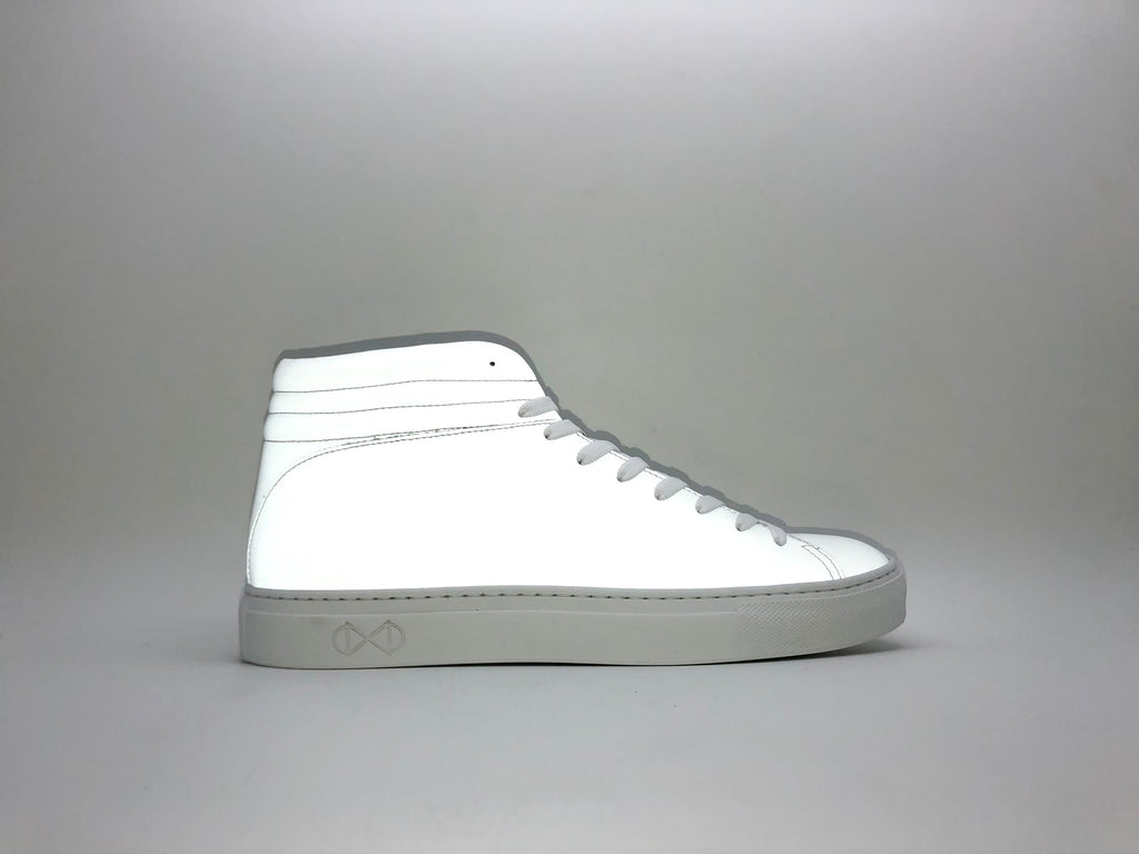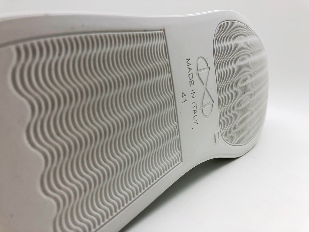 The vegan Sleek version. The ultimate timeless luxury sneaker. The nat-2™ Sleek is produced under fair conditions in a small family production in Italy. The style is a unique timless classic mostly in clean white only with a changing back heel. The used white glass surface [ 3M ® ] is the finest and smoothest available. The shoe also features a real cork removable insole.
