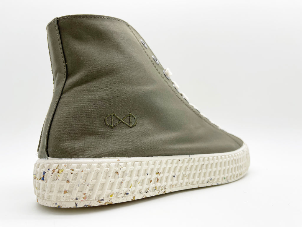 The vegan Mono ETA Outdoor Sneaker by nat-2 ™ is made of real certified organic cotton which is swiss made and woven so tight it gets waterproof without any chemicals used. The lining is made from real bamboo.