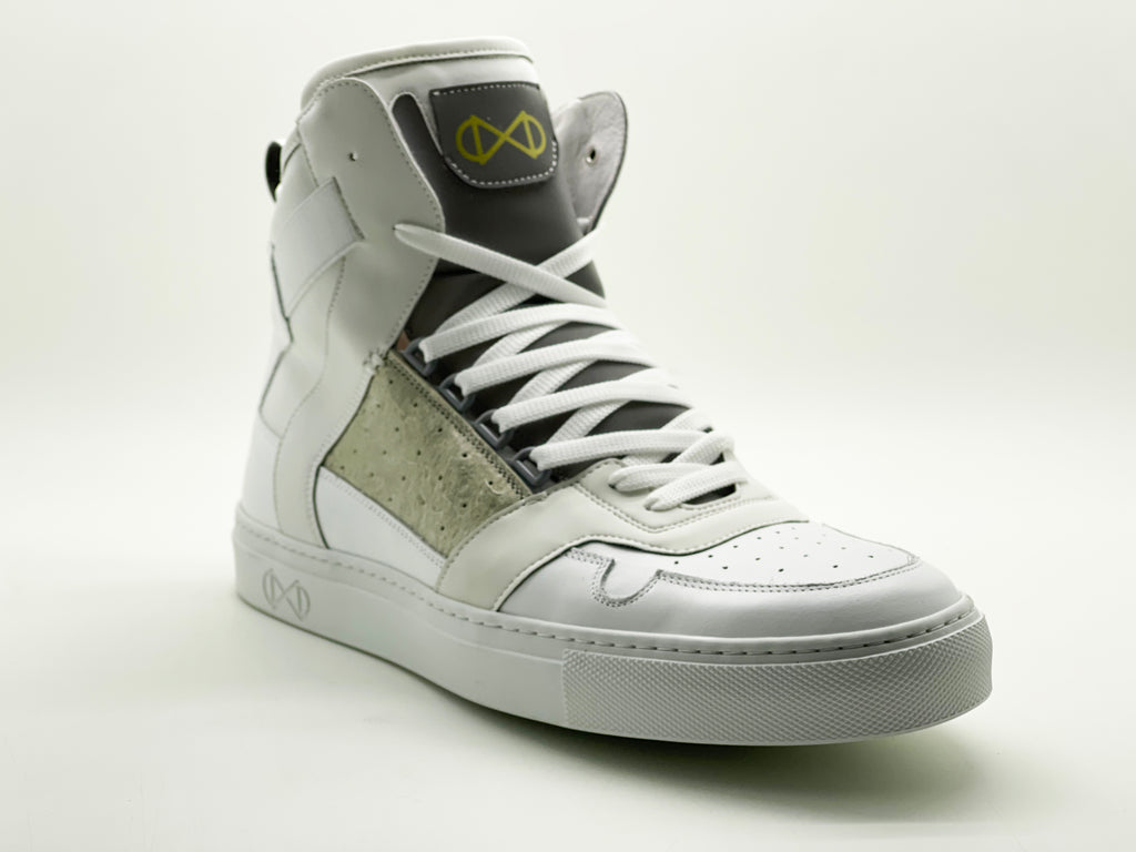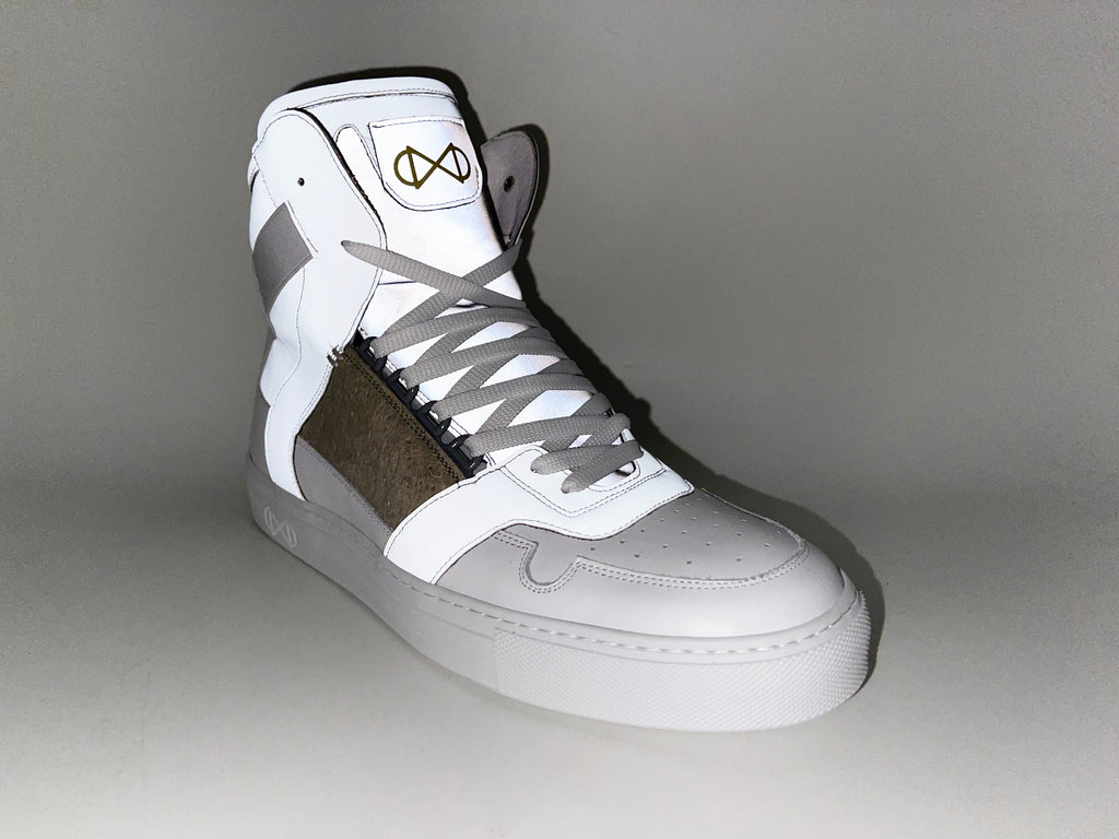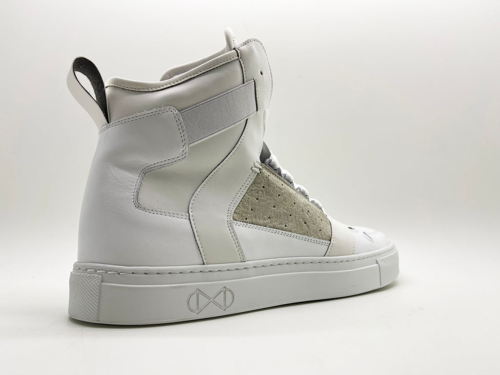 Upper material: finest nappa leather x upcycled fabric