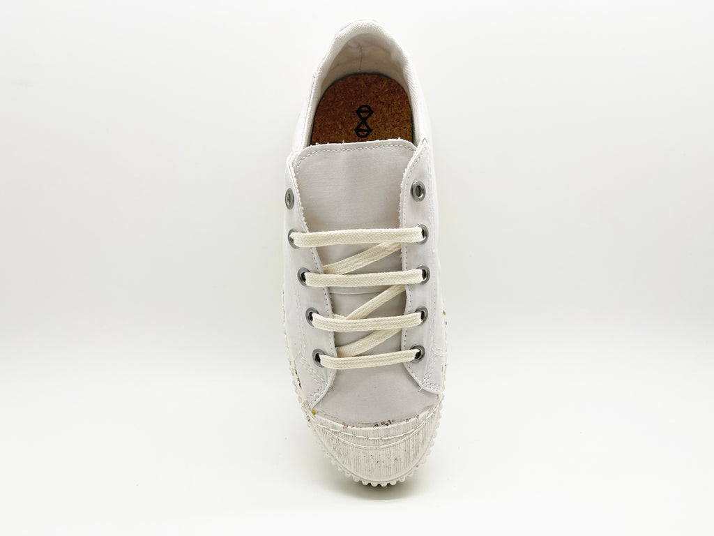 Der vegane Mono ETA Low Outdoor Sneaker von nat-2™ besteht auch echter, zertifizierter Biobaumwolle, welche in der Schweiz so eng gewoben wurde, dass sie ohne jegliche Chemikalien wasserdicht ist. Das Futter ist aus Bambus gefertigt und die herausnehmbare Innensohle besteht ebenfalls aus recyceltem Kork und Zuckerrohr Schaum.