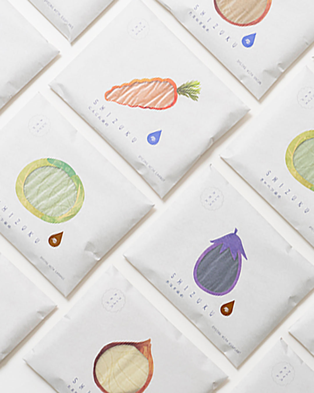 The absorbent Shizuku Towel collection made using natural dyes as resource recycling from freshly grown local vegetables with slight imperfections that would otherwise end up in waste.