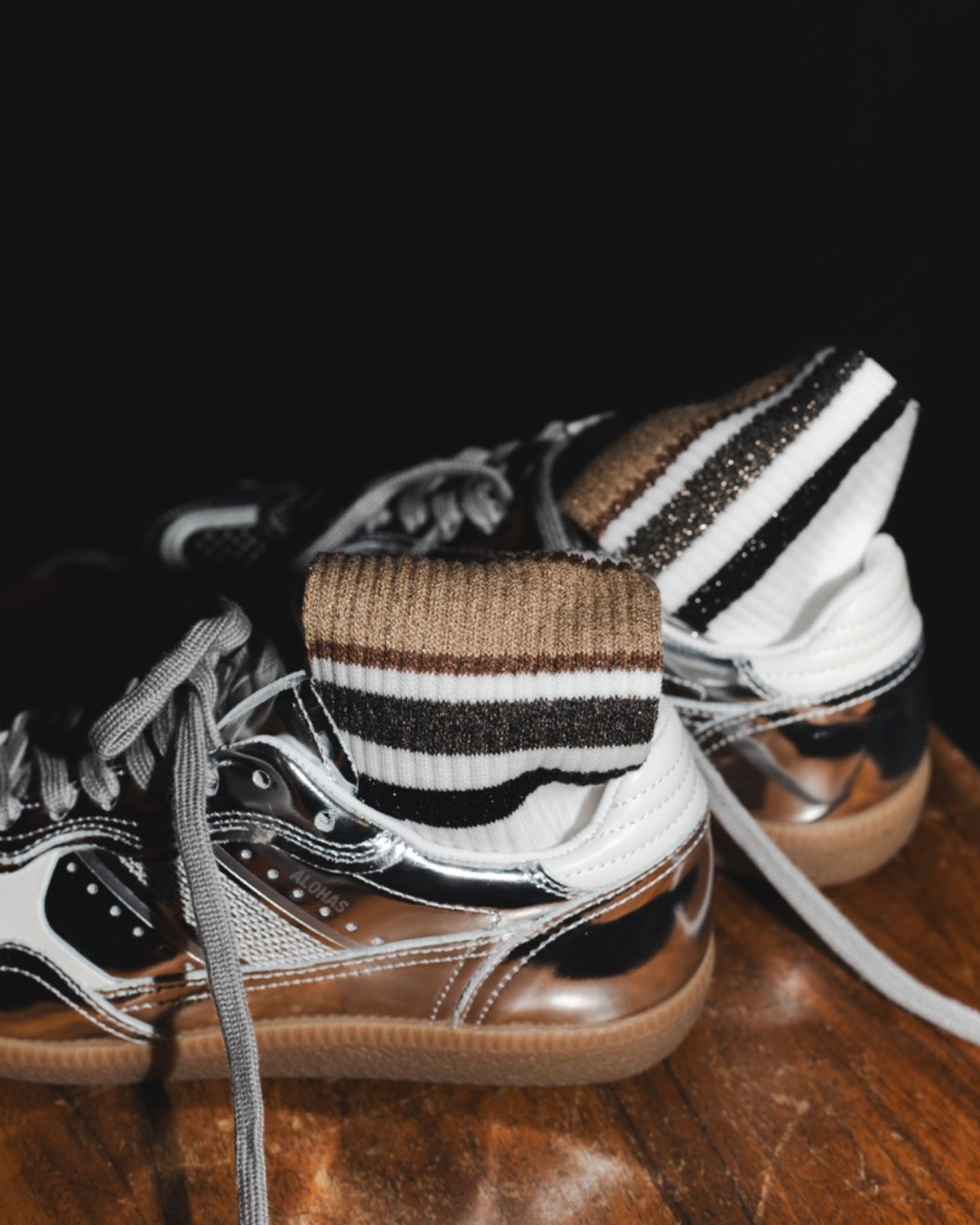 SPORTY GLITTER socks combine shiny highlights with a soft plush sole and a sporty cut. The result: a fashion piece that stands out with every step – while remaining wonderfully comfortable.