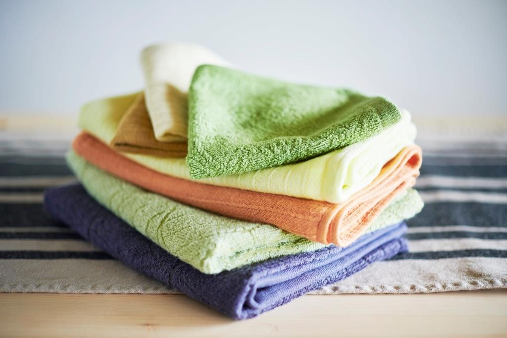 The absorbent Shizuku Towel collection made using natural dyes as resource recycling from freshly grown local vegetables with slight imperfections that would otherwise end up in waste.
