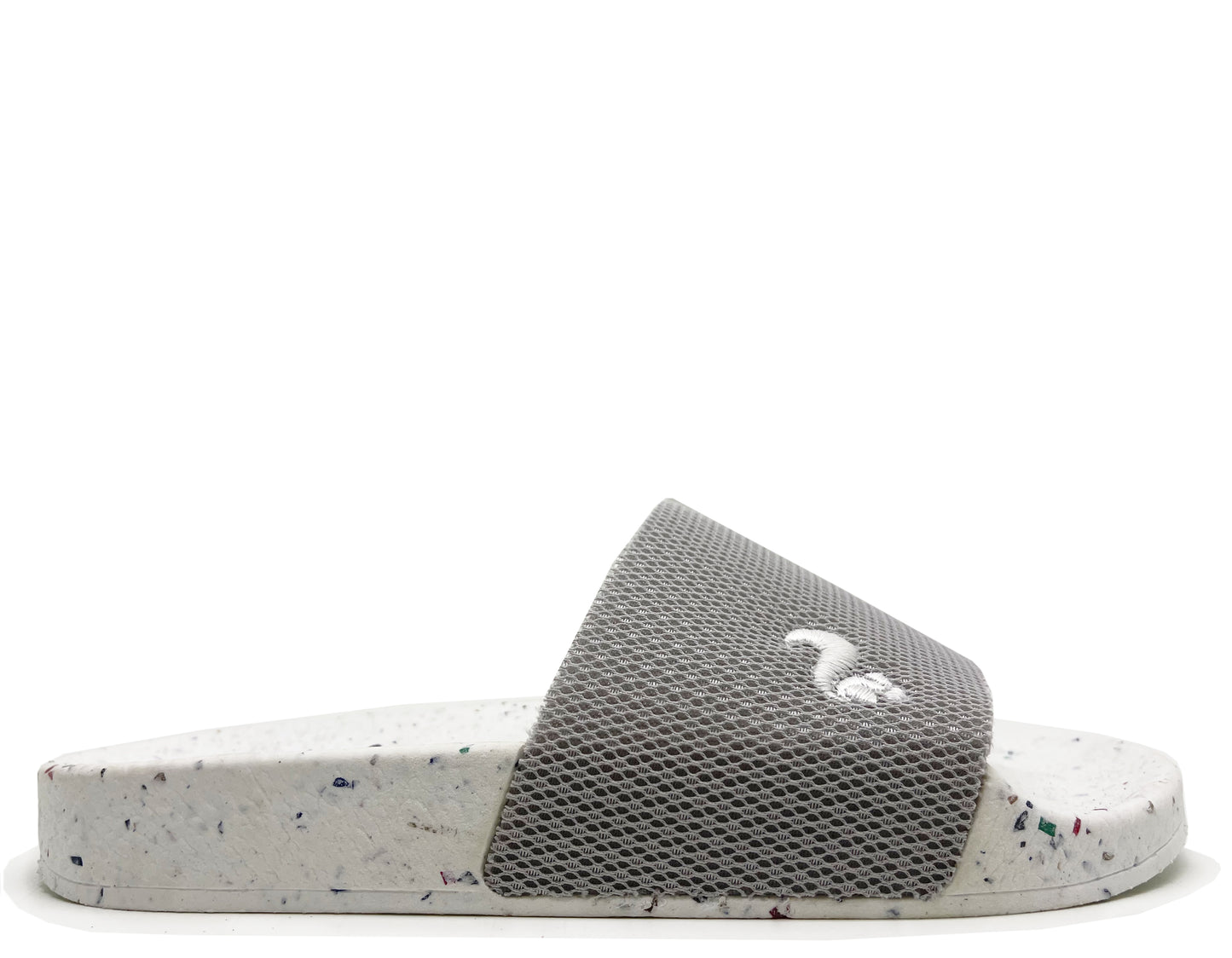 100% made in Italy. Die veganen Eco Beach Slide von thies ® sind aus recyceltem Gummi und recycelten post-consumer PET Flaschen hergestellt.